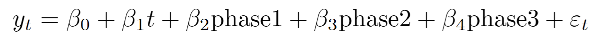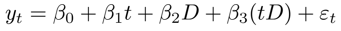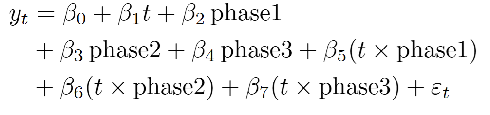 政策介入によって価格上昇の傾きに変化が起きたと仮定するモデルです。