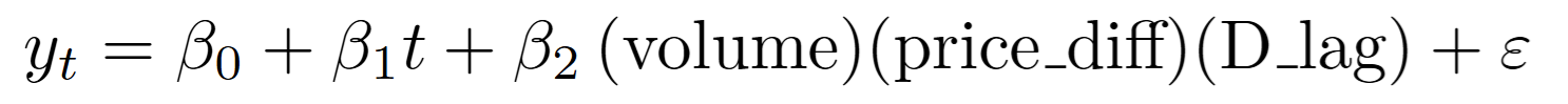 とはいえ変化の項のp値はp <.0001となっていて、少なくともこの政策により価格上昇のトレンドは変化したといえそうです。